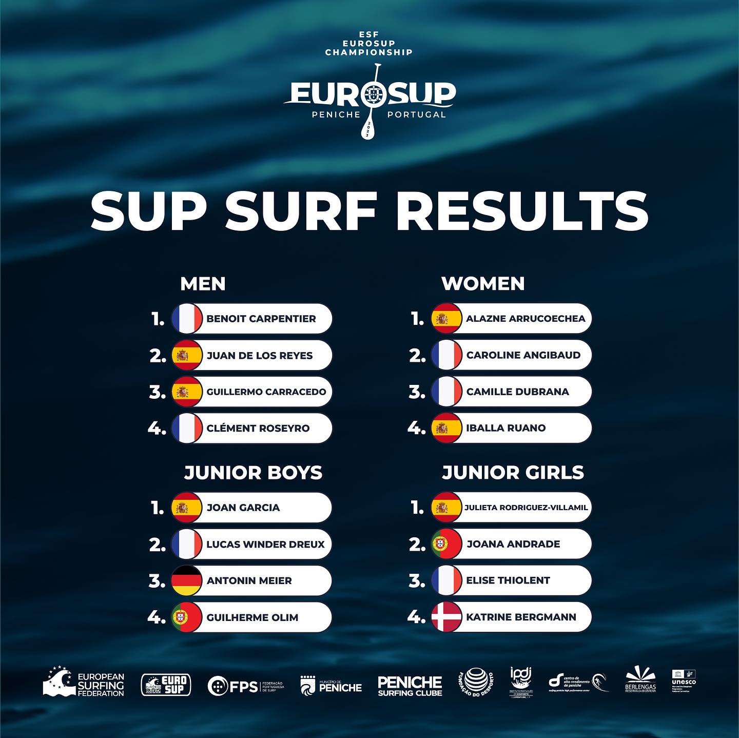 CLASSEMENT DES NATIONS: 🥇 Espagne 🥈 France 🥉 Italie 4e Portugal